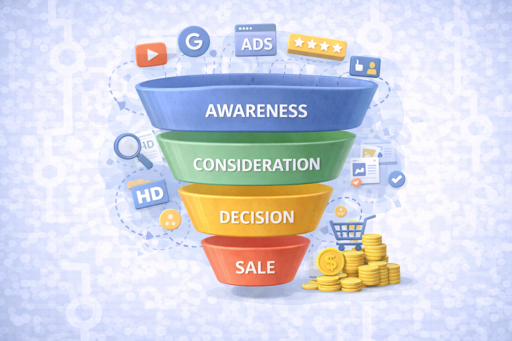 A strategic funnel is the structured path your customer takes from first awareness to final purchase.